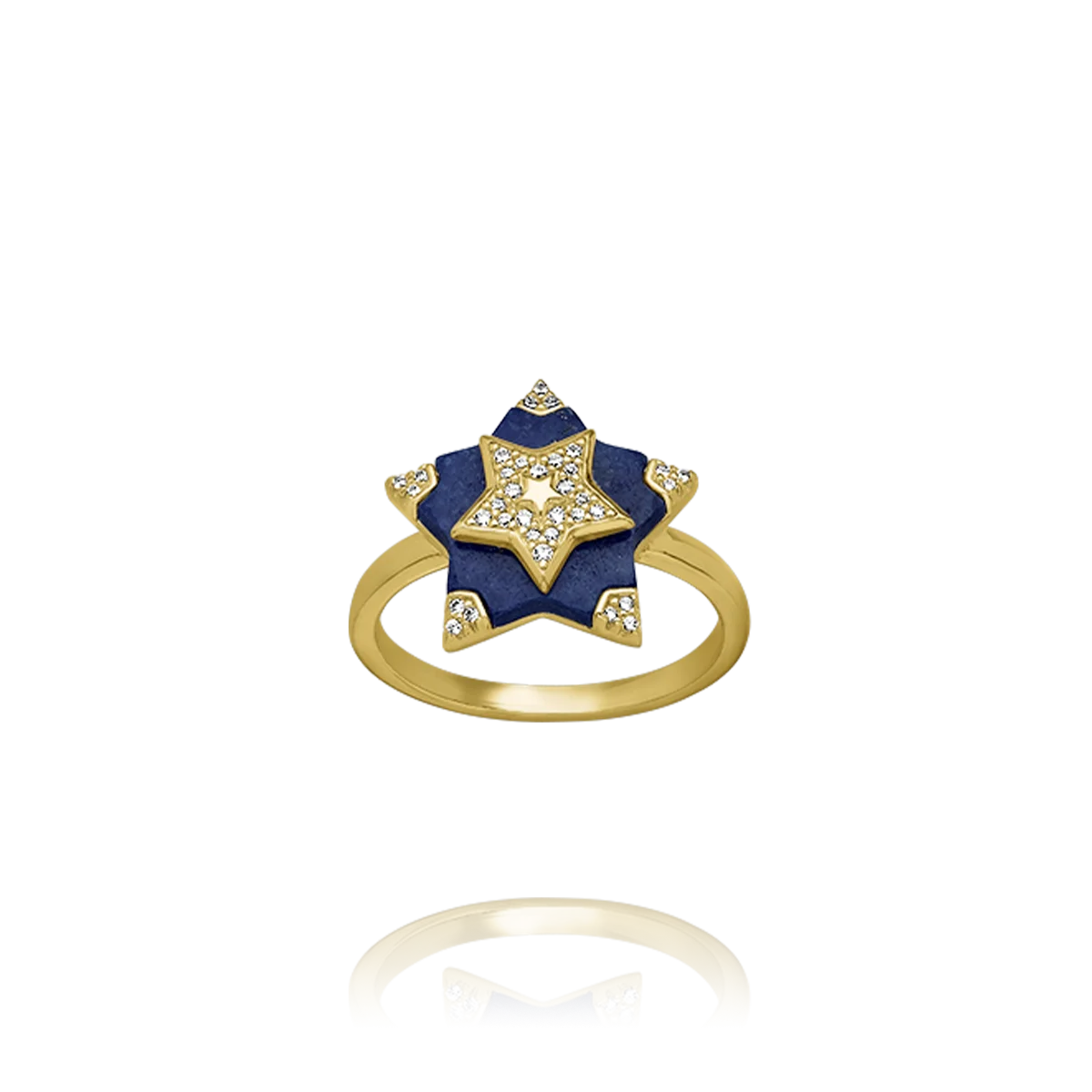 Succombez à l’intensité colorée de la Bague LÉGENDE Étoile Bleue, un bijou qui allie mystère et éclat. Son étoile en Argent doré, ornée de lapis-lazuli, dévoile un bleu profond et fascinant, sublimé par l’éclat des oxydes de zirconium. Inspirée par la magie céleste, cette bague évoque la puissance des étoiles et le mystère du cosmos.