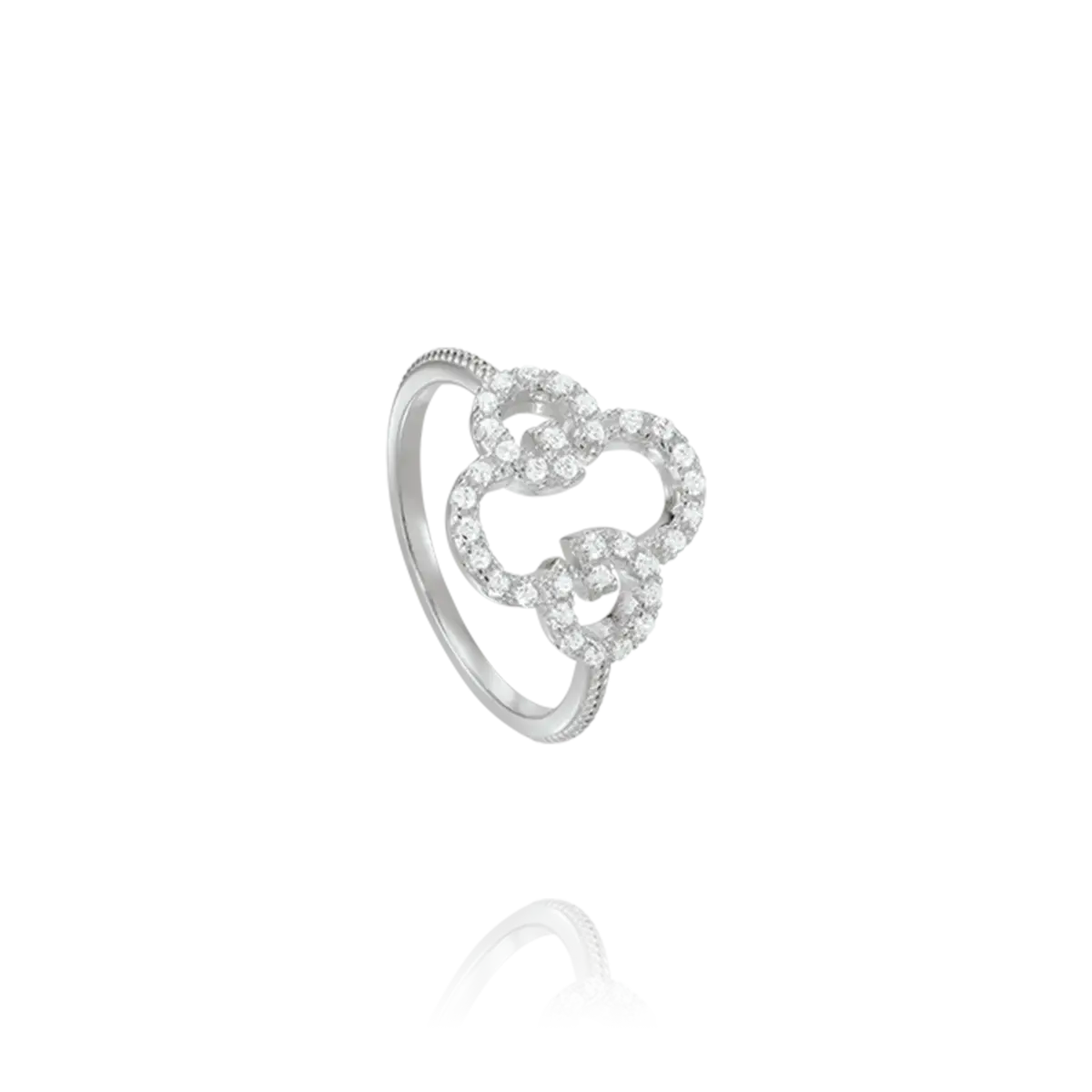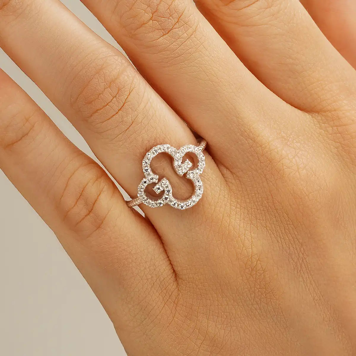 En argent 925, cette bague est élégante et raffinée. Elle ajoutera une touche de luxe à votre look. Le design unique de cette bague est inspiré des initiales de la marque Charles Garnier formant un trèfle. Les lettres CG sont ornées d'oxydes de zirconium apportant une touche éclatante.