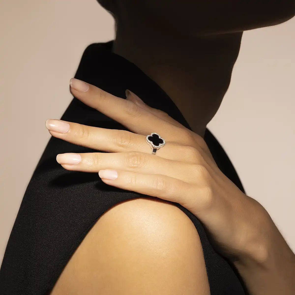 Raffinée et élégante, cette bague en argent 925 rhodié accueille un trèfle en agate noire. Ce trèfle est orné d'oxydes de zirconium. Tout en finesse, ce bijou apparait raffiné et élégant.