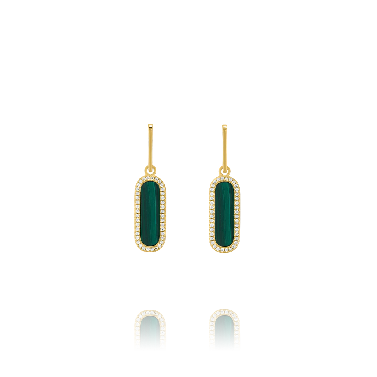 Ces boucles d'oreilles ovales de la collection Styles sont ornées d'une pierre malachite entourée d'éclatants oxydes de zirconium.