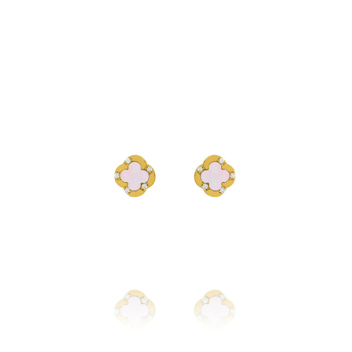 Boucles d'Oreilles Trèfle Nacre Rose LÉGENDE