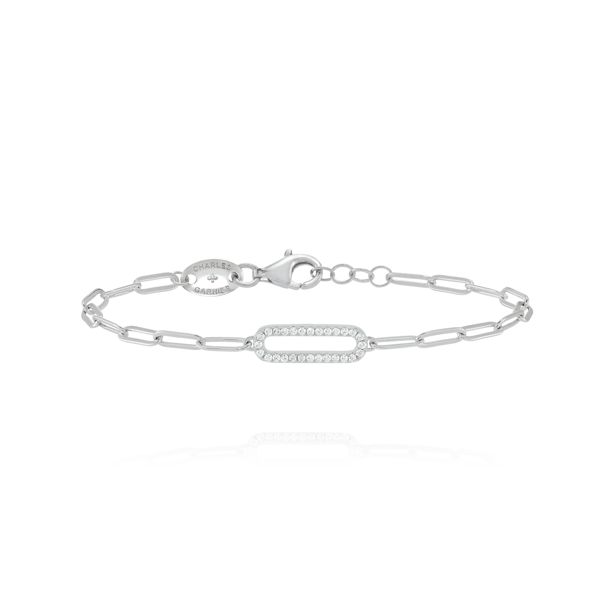 Ce bracelet fin et souple, à la fois chic et minimaliste, composé de maillons allongés présentant au centre un maillon plus grand pavé de oxydes de zirconium. En argent 925, ce bracelet possède un fermoir mousqueton et une chaine de réglage pour s'adapter au mieux à votre poignet.