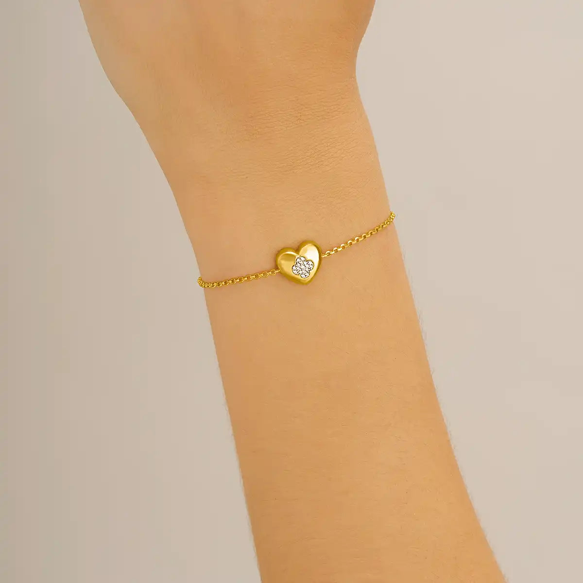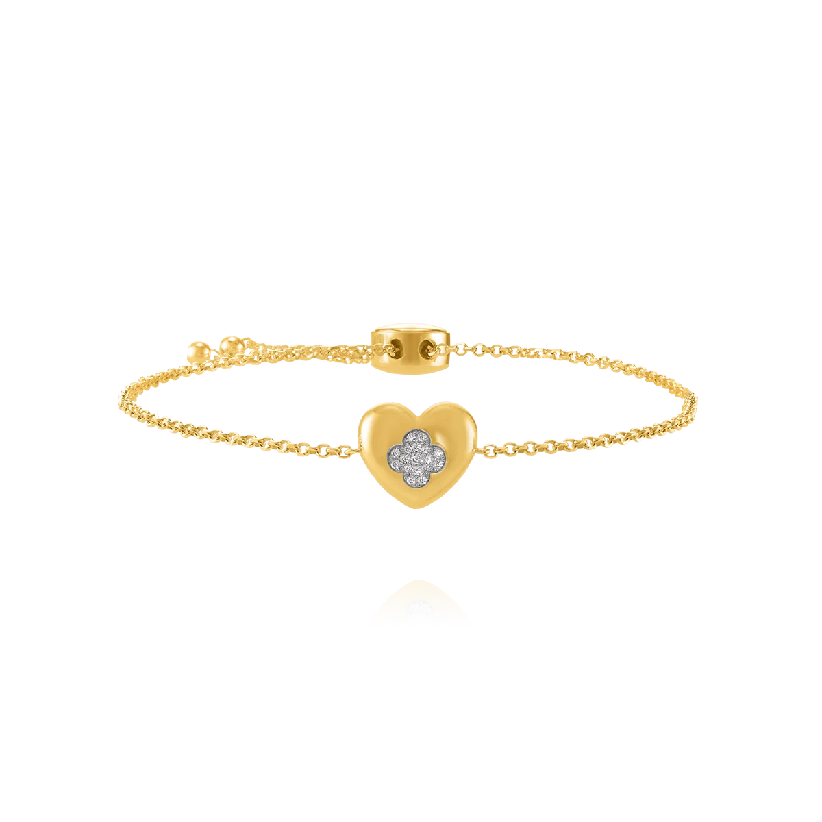 Ce bracelet doré de la collection Passion éblouit avec un cœur doré et un trèfle en oxyde de zirconium.