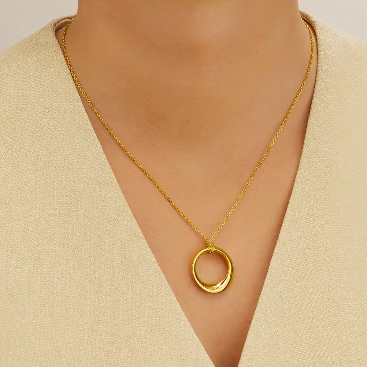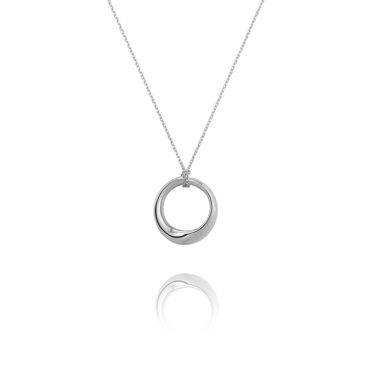S'inspirant de la collection Formes, ce collier est mis en valeur par un pendentif circulaire irrégulier en argent, offrant une touche moderne à un design classique.