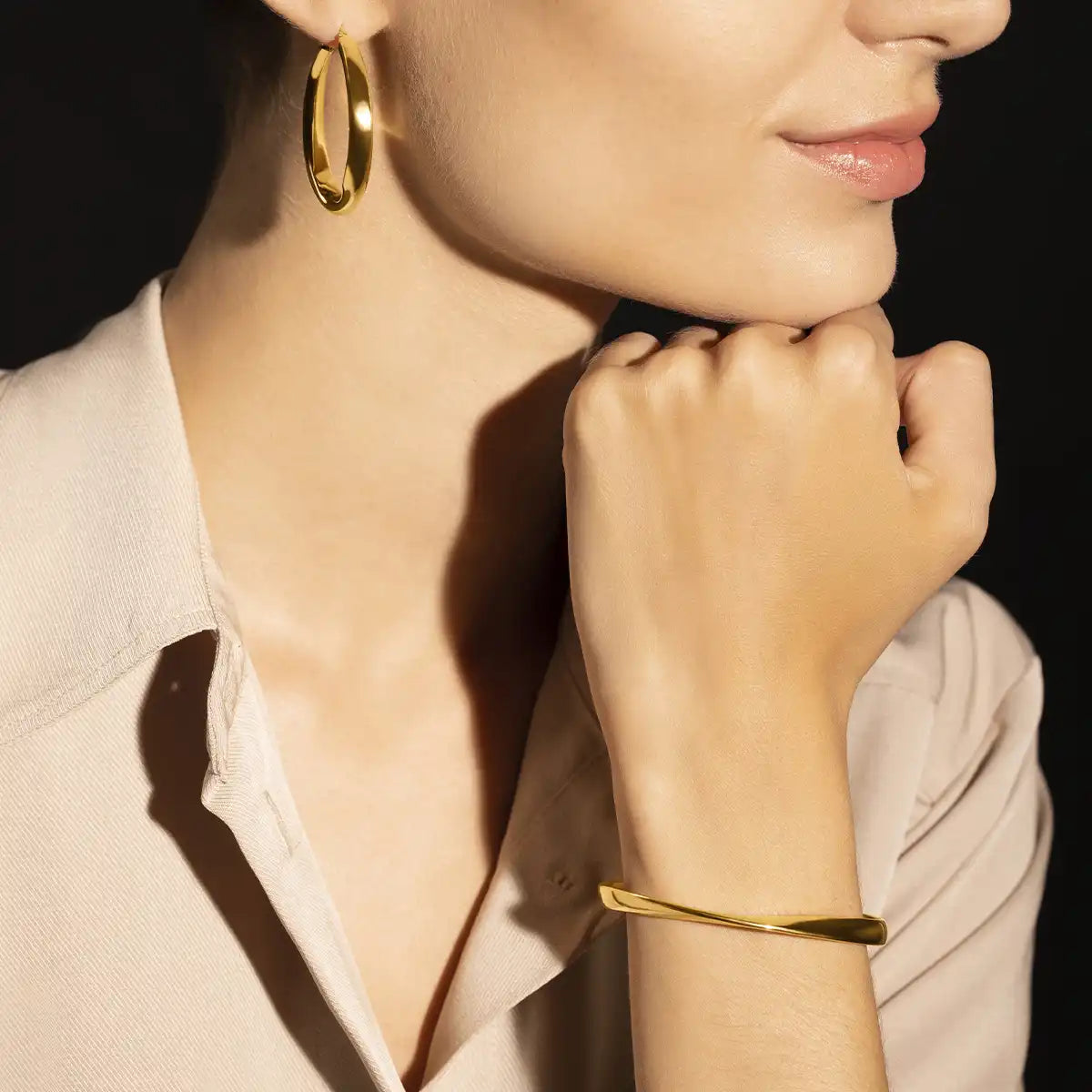 Ce bracelet jonc de la collection Formes se distingue par sa forme circulaire délicatement torsadée, réalisée en argent doré.