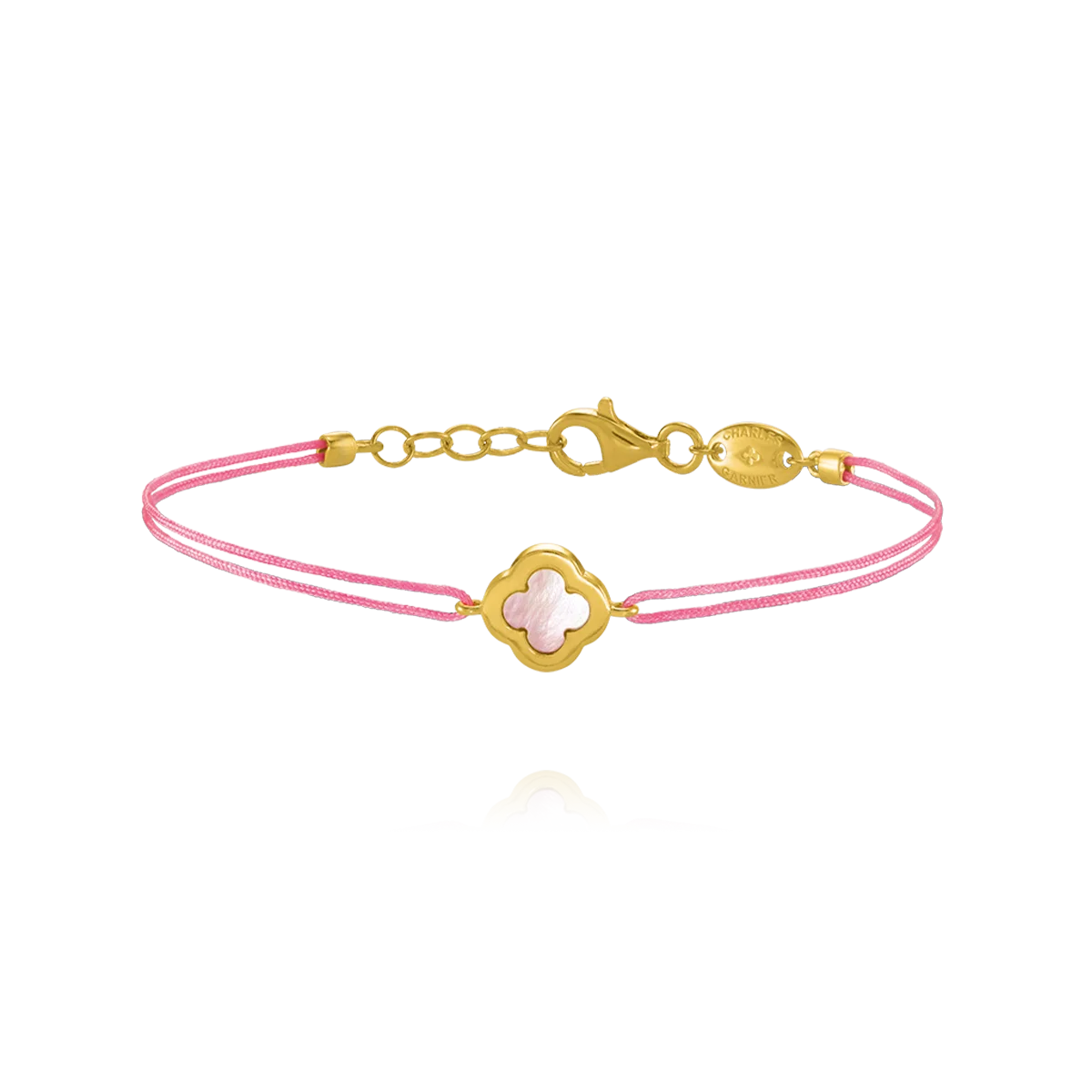 Révélez votre féminité avec le Bracelet Nacre & Rose LÉGENDE, un bijou tout en délicatesse et en douceur. Ce bracelet en argent doré, orné d'un trèfle en nacre lumineux et élégant, symbolise la chance et l'harmonie. La nacre, aux vertus apaisantes, capte la lumière avec subtilité pour magnifier vos mouvements. La cordelette rose, fraîche et raffinée, encadre ce talisman précieux avec élégance. Le Bracelet Nacre & Rose LÉGENDE est un bijou tendre et raffiné, un cadeau idéal pour incarner l'élégance féminine. Un incontournable à offrir ou à s'offrir.