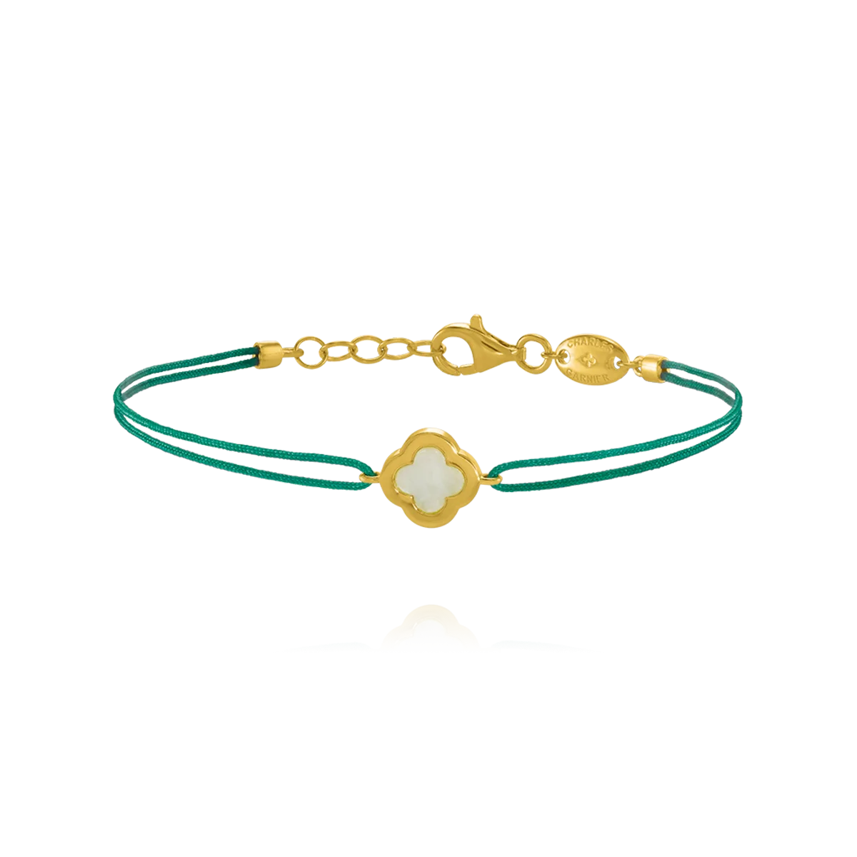 Optez pour un bijou élégant, avec le Bracelet Nacre & Vert LÉGENDE, où la nature et la délicatesse semblent s'unir harmonieusement. Ce bijou en argent doré, orné d'une nacre éclatante, arbore un trèfle raffiné, symbole de chance et d’harmonie. La nacre, réputée pour ses vertus apaisantes, reflète subtilement la lumière pour magnifier chaque geste. La cordelette verte, fraîche et sophistiquée, encadre ce talisman avec élégance. Le Bracelet Nacre & Vert LÉGENDE est un bijou précieux et raffiné, parfait pour incarner une féminité naturelle et raffinée. Un cadeau à la hauteur de toutes les occasions.