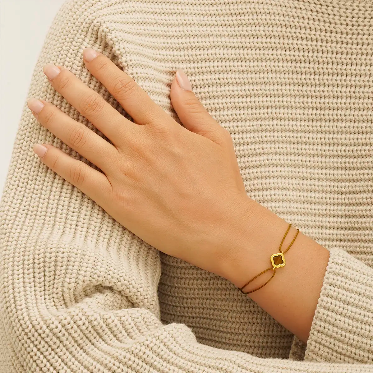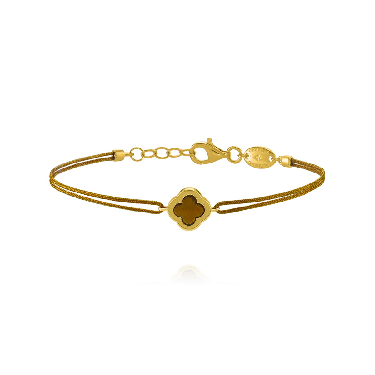 Magnifiez votre poignet avec le Bracelet Oeil de Tigre & Brun LÉGENDE : ce bijou en argent doré, orné d’un œil de tigre, pierre de protection et de courage, arbore un trèfle délicat, symbole de chance et d’harmonie. L'œil de tigre, pierre naturelle "solaire" connu pour ses vertus, reflète délicatement la lumière pour sublimer chaque mouvement. La cordelette brune, élégante et discrète, encadre cet élégant pendantif avec grâce. Le Bracelet Oeil de Tigre & Brun LÉGENDE est un bijou luxueux et intemporel, le cadeau parfait pour révéler sa féminité.