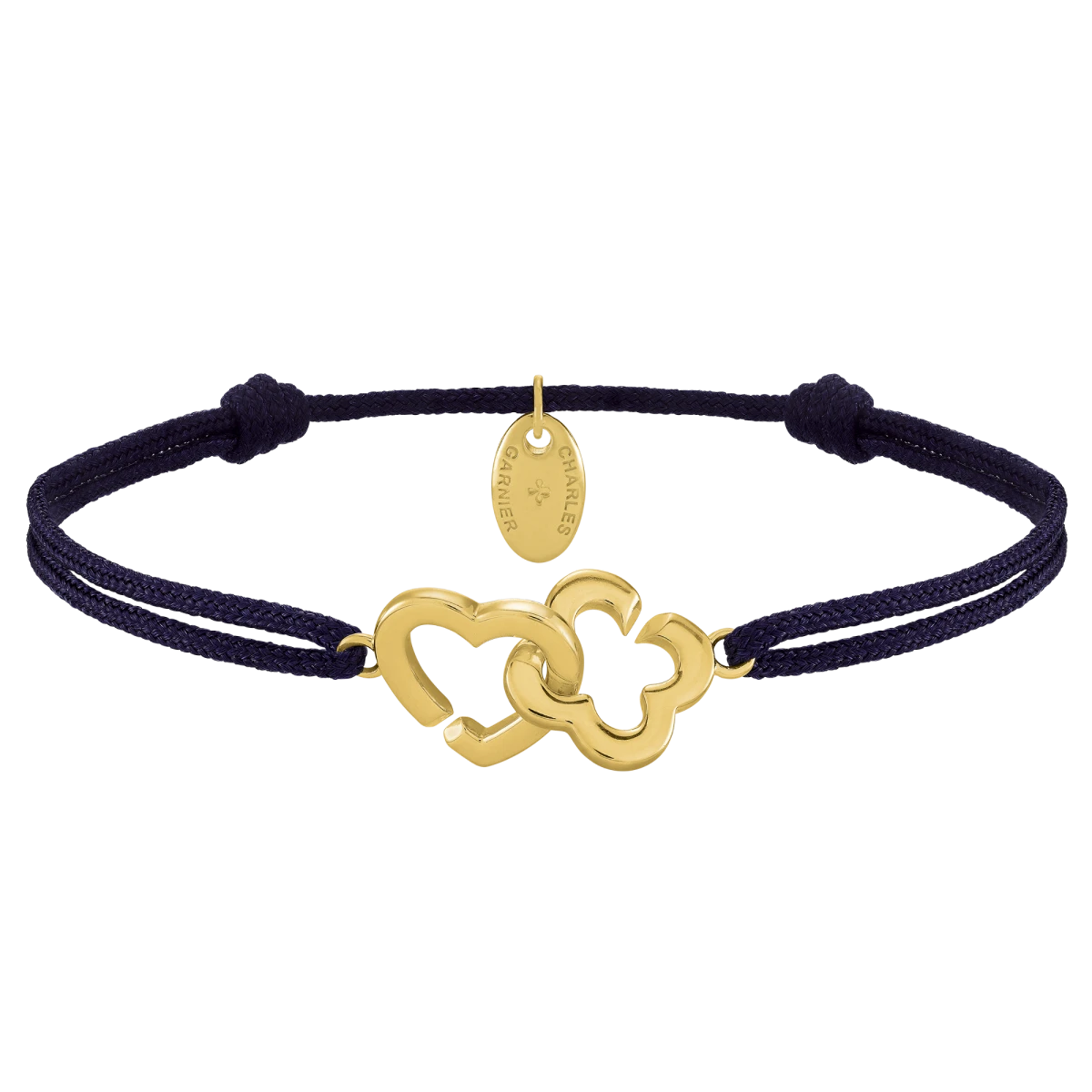 Ajoutez une note éclatante à votre poignet avec le bracelet PASSION, une création élégante de Charles Garnier Paris. Sa cordelette bleu roi, symbole de force et de profondeur, met en valeur l’élément central : un cœur et un trèfle enlacés en argent doré, alliance harmonieuse de l’amour et de la chance.