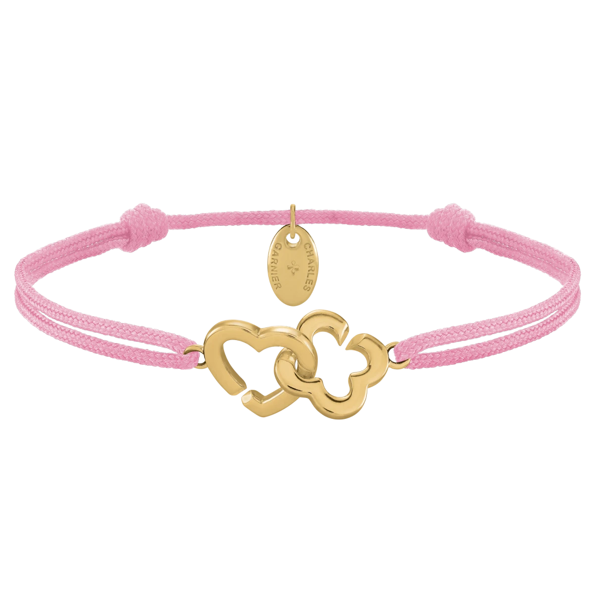 Affichez une touche de tendresse et de modernité avec le bracelet PASSION, une création pleine de symbolique signée Charles Garnier Paris. Sa fine cordelette rose apporte fraîcheur et légèreté, tandis que le duo cœur et trèfle enlacés en argent doré exprime l’union parfaite entre amour et chance.