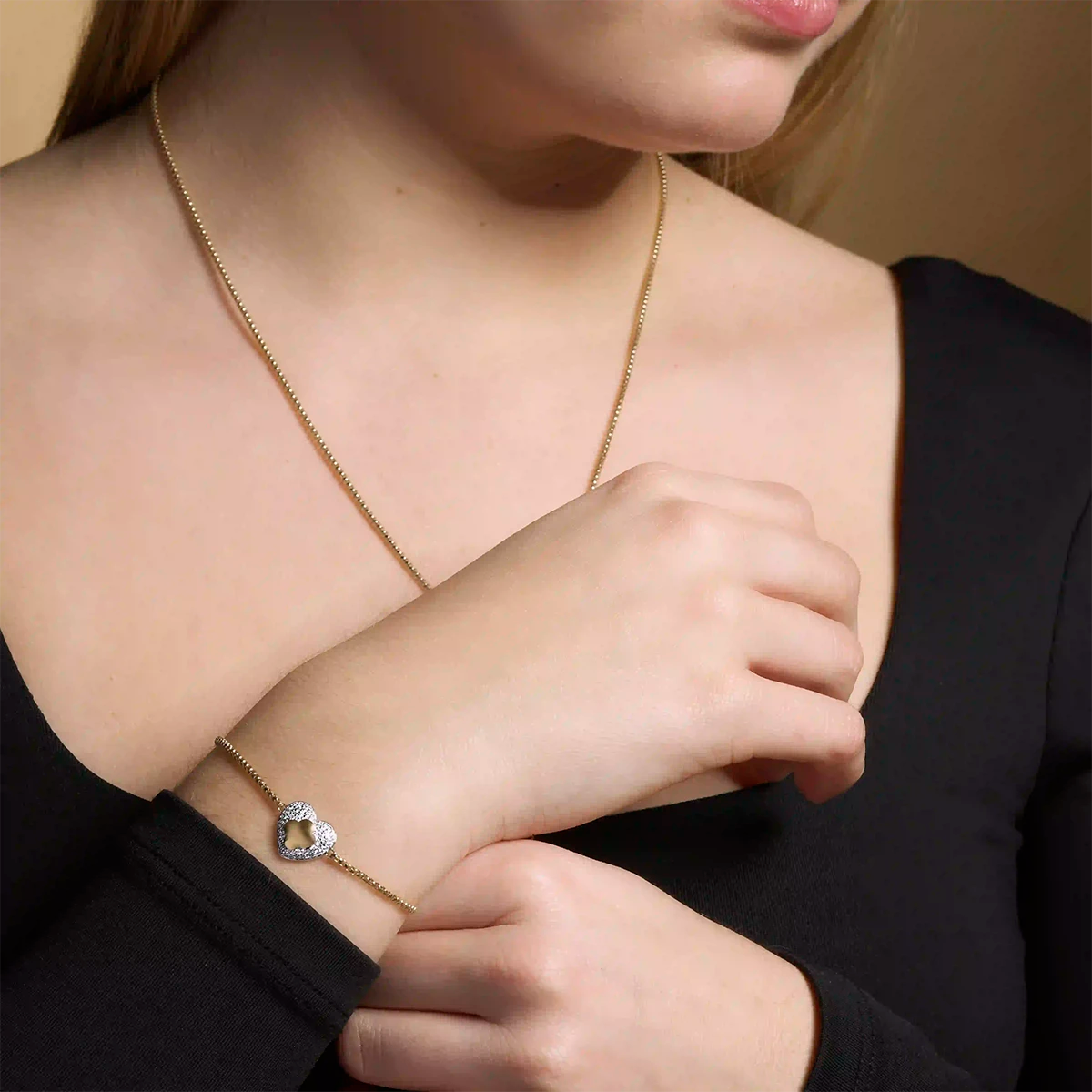 Le Bracelet PASSION doré cœur se distingue par son design délicat et raffiné. En argent 925 doré, il présente un pendentif en forme de cœur, serti d'oxydes de zirconium, où un motif trèfle doré apporte une touche lumineuse et harmonieuse. Son éclat subtil rehausse la finesse du poignet avec une élégance intemporelle.