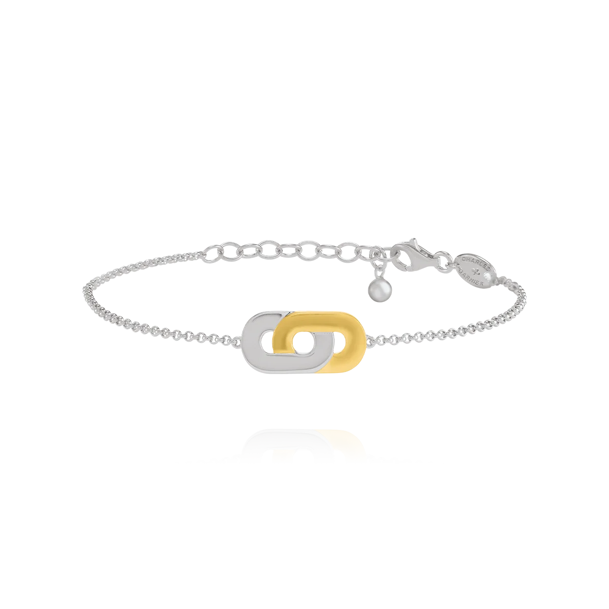 Offrez-vous le Bracelet STYLES, une bijou qui sublime la délicatesse des poignets ! En argent 925 bicolore, il présente un jeu de maillons entrelacés où l'argent doré se marie à la perfection avec la douceur de l'argent pur, créant ainsi un contraste saisissant. L'absence de pierres met en valeur la pureté des métaux, tandis que la brillance naturelle de l'argent doré apporte une touche de lumière subtile. Le bracelet STYLES est l'accessoire idéal pour celles qui cherchent à ajouter une note d'élégance discrète à leur tenue du jour.