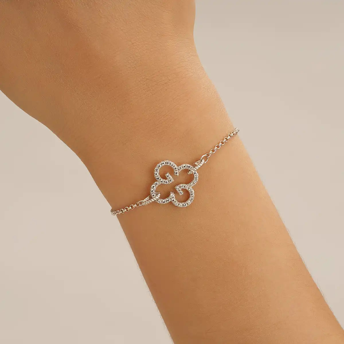 Tout en finesse, ce bracelet en argent 925 se compose d'un trèfle serti d'oxydes de zirconium représentant les initiales de la marque : CG. Ce bijou habillera votre poignet avec féminité et raffinement.