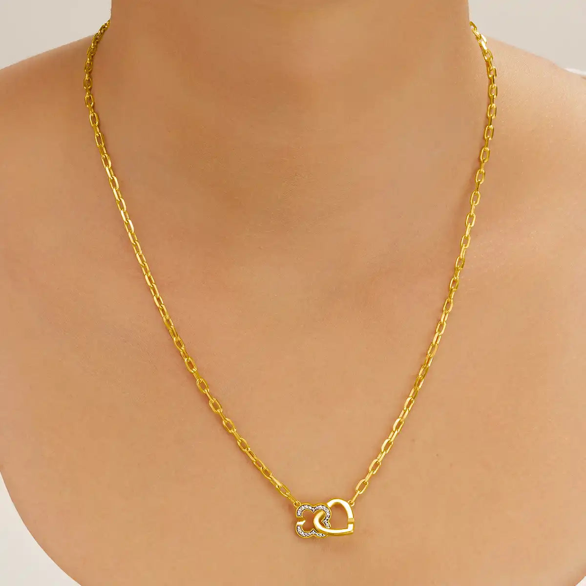 Ce collier de la collection Passion est une déclaration d'amour et de chance, avec un cœur doré et un trèfle entrelacés en oxyde de zirconium.