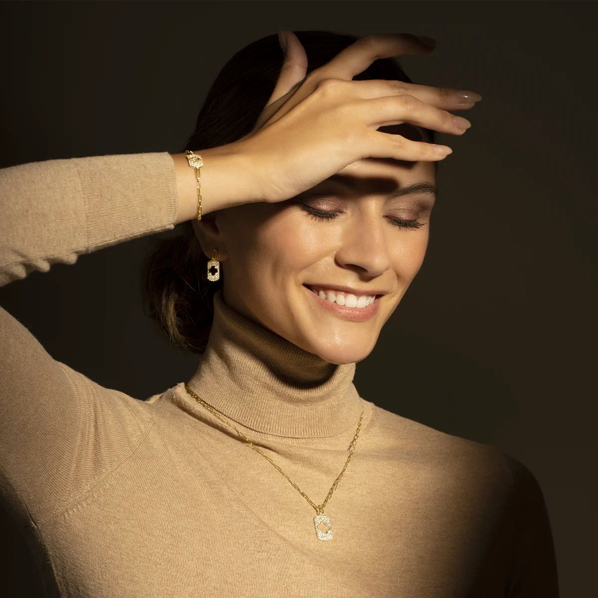 Rayonnez avec le Collier Trèfle Ajouré LÉGENDE de Charles Garnier Paris, une pièce maîtresse qui allie sophistication et symbolisme. Ce collier délicat en argent doré est orné d'un pendentif en forme de plaque rectangulaire, entièrement sertie d'oxydes de zirconium qui captent et reflètent la lumière avec éclat. Au centre de cette surface scintillante, un trèfle ajouré est subtilement découpé, ajoutant une touche de légèreté et un clin d'œil discret à la chance et à l'harmonie.