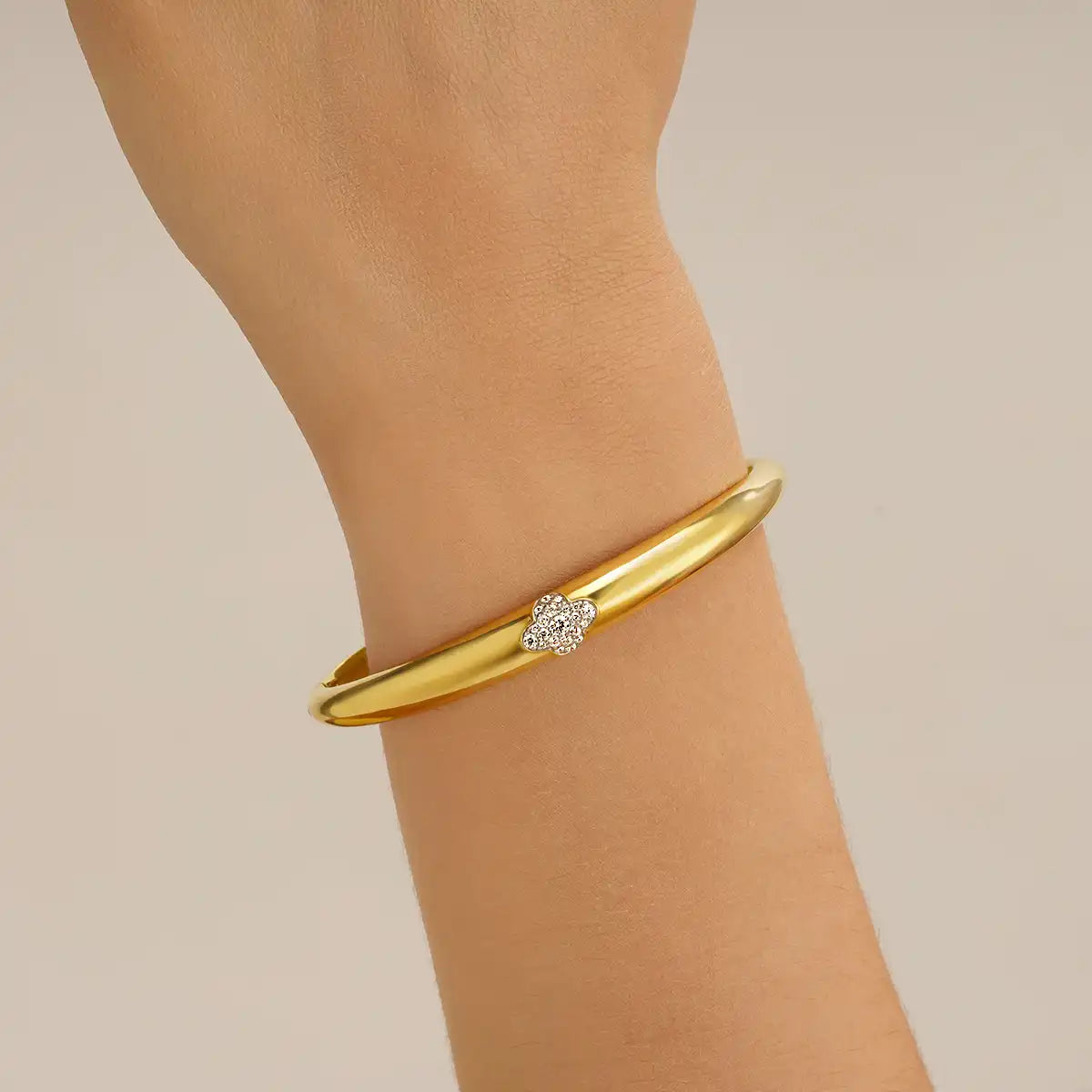 Ce magnifique bangle en argent 925 doré est orné d'un trèfle serti d'oxydes de zirconium. Issu de la collection Légende, ce bijou est original et précieux.