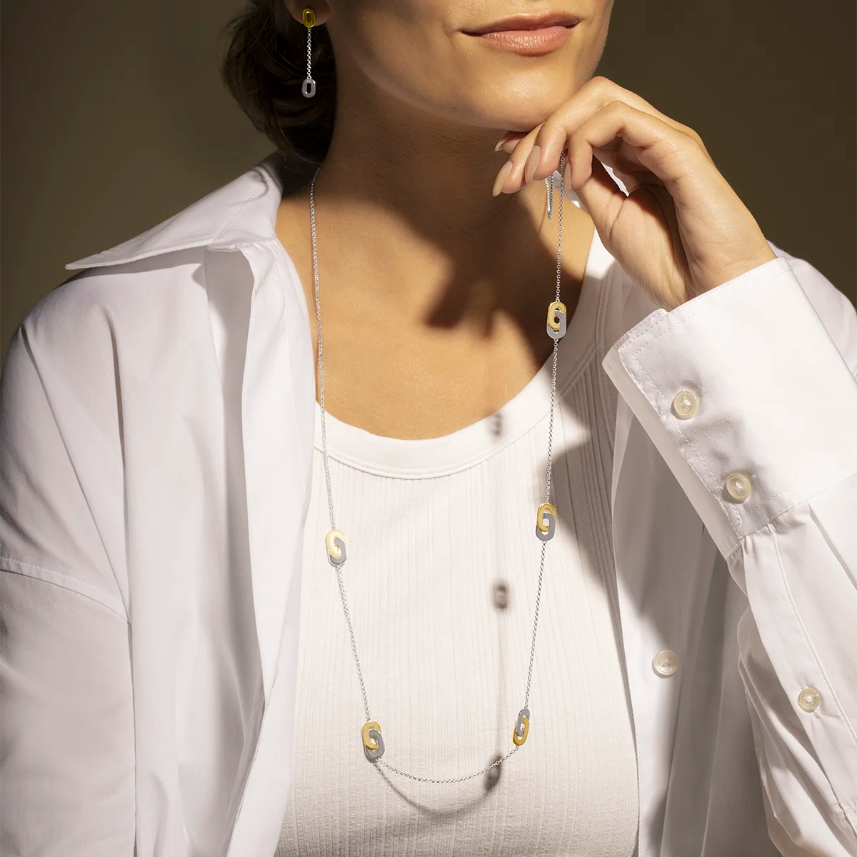 Léger et délicat, le Sautoir STYLES Maillons Bicolores épouse vos mouvements avec grâce, sublimant aussi bien une tenue du quotidien qu’un look plus habillé. Portez-le seul pour une allure épurée ou associez-le à d’autres colliers pour un effet superposé irrésistiblement tendance.