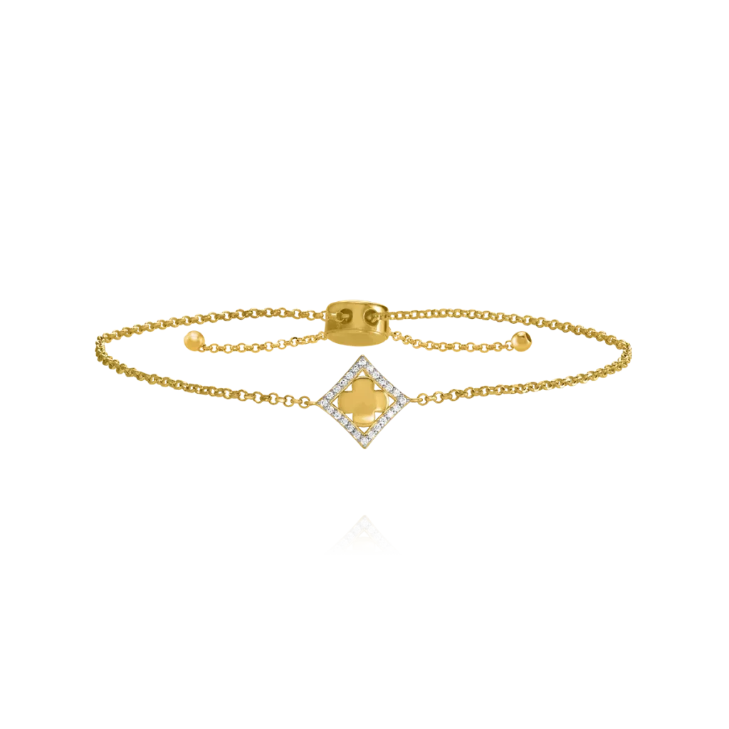 Enveloppez votre poignet avec le Bracelet Losange & Trèfle LÉGENDE, un bijou délicat en argent doré orné d’oxydes de zirconium. Le motif losange, où se niche un trèfle porte-bonheur, illumine chaque mouvement d’une lueur élégante. Ce bijou, à la fois raffiné et féminin, est l’incarnation parfaite du luxe et de la douceur. Doté d’un fermoir coulissant, ce bracelet s’ajuste facilement pour épouser parfaitement la finesse de votre poignet. Le Bracelet Losange & Trèfle LÉGENDE est le cadeau idéal pour une femme moderne, recherchant un accessoire qui allie finesse et symbolique.